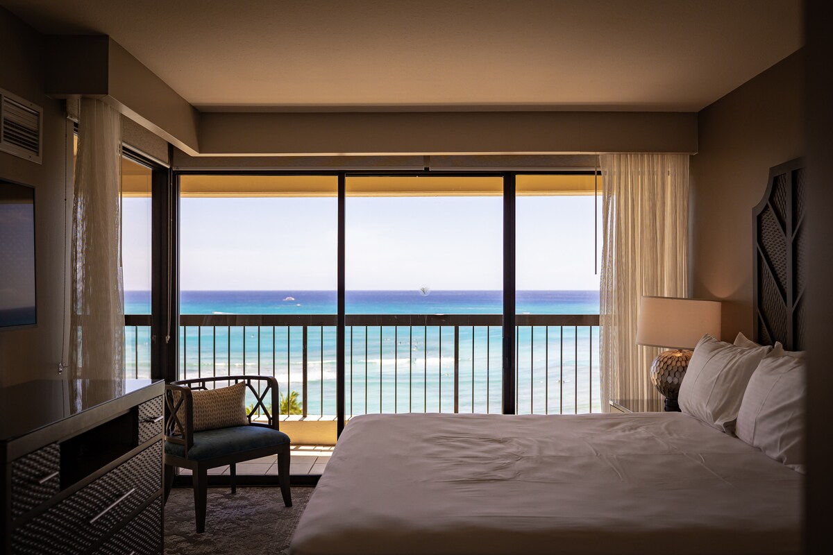 Cama king size | Vista para o mar | Passos para Waikiki Beach