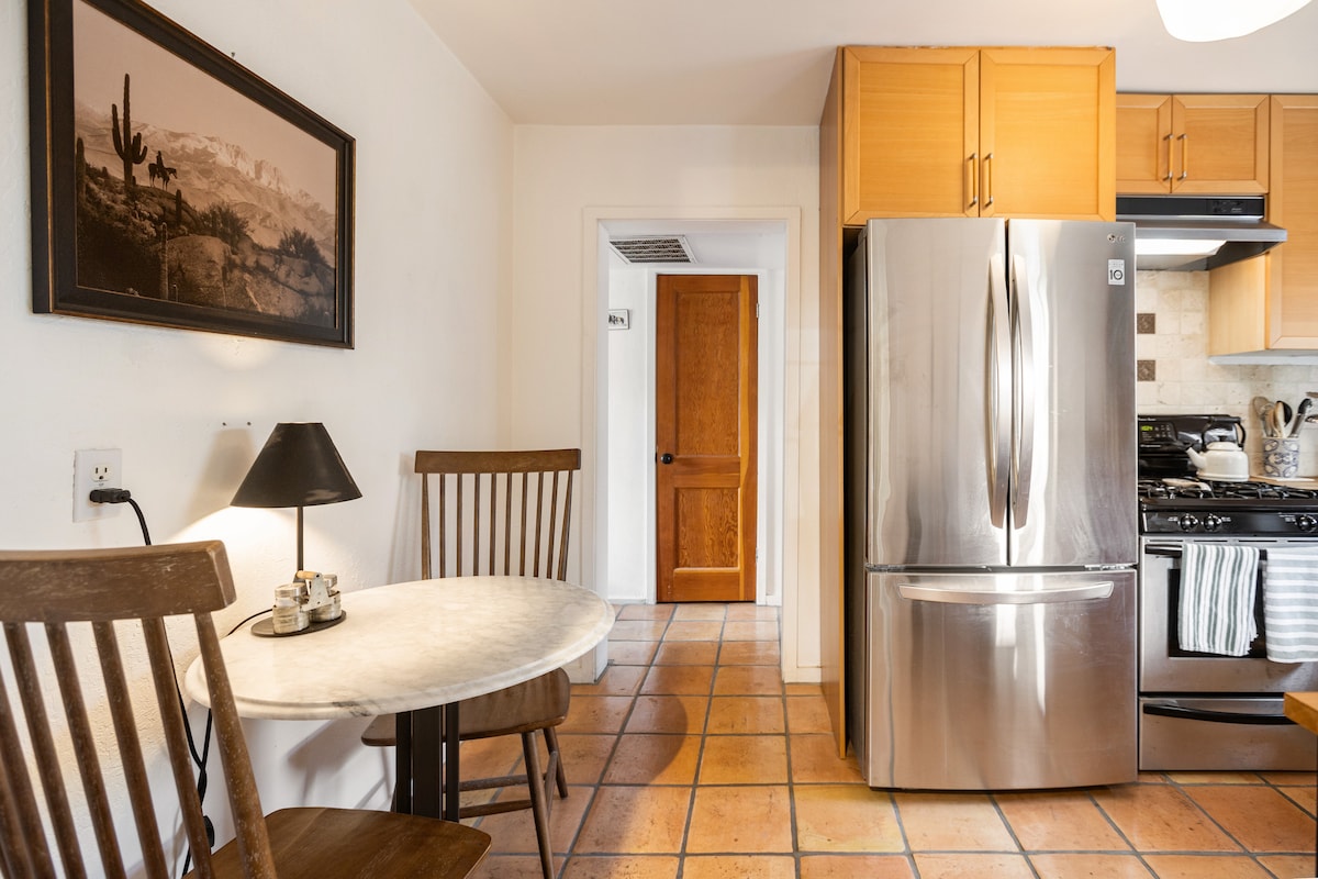 Bem-vindo ao seu novo Airbnb favorito do DT Phoenix. Esta Casita cuidadosamente organizada não poupa despesas. Dos tetos altos e banheiro revestido de azulejos; para as comodidades premium, como cafeteira Nespresso, alto-falante Marshall Bluetooth e duas TVs inteligentes equipadas com serviços de streaming, temos tudo o que você precisa. Cada quarto reforça a extrema atenção aos detalhes para garantir que cada hóspede esteja confortável. Entre o interior premium, o quintal pitoresco e a localização central - nos esforçamos para superar as expectativas. Embora esta casa tenha sua própria entrada privativa e quintal com tudo o que você precisa, estarei sempre disponível. Eu moro na casa principal da propriedade e posso ser contatado a qualquer momento. Caminhe até restaurantes, uma cervejaria local e uma loja de mercado, com a parada de trens urbanos a 800 metros de distância para explorar mais longe. O Aeroporto Sky Harbor e o centro da cidade ficam a 5 minutos de carro, com Arcádia, Scottsdale e Tempe apenas um pouco mais longe. As melhores opções de transporte para se locomover na região seriam usar aplicativos de compartilhamento de viagens, dirigir ou utilizar o serviço Lightrail que vai para a maioria dos lugares no vale.