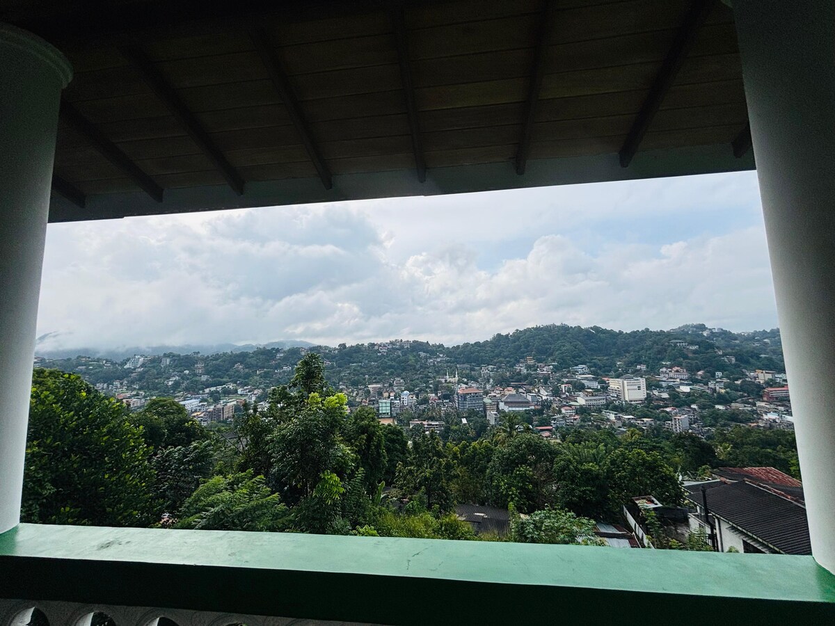 Bem-vindo ao nosso apartamento de um quarto no coração da cidade de Kandy. A poucos minutos das principais atrações e lojas, está situado em uma colina que oferece vistas deslumbrantes da paisagem urbana e montanhas distantes, especialmente ao pôr do sol. Desfrute da sua varanda privada e acesso a uma cozinha totalmente equipada. Residimos no andar de baixo e estamos disponíveis para qualquer assistência que você possa precisar, garantindo uma estadia confortável e inesquecível.