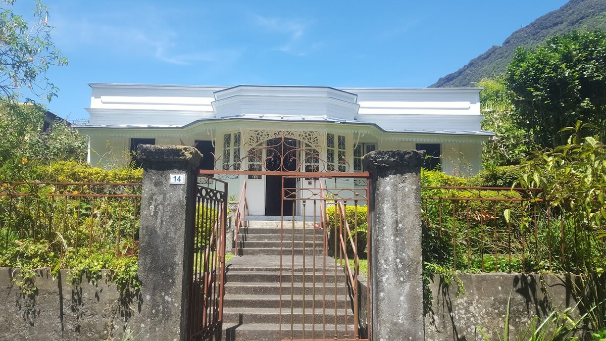 Bela casa crioula renovada, bem iluminada, limpa e tranquila, sem vizinhos, com 100 m², cercada por um belo jardim fechado à beira do Parque Natural, inscrito no Patrimônio Mundial da UNESCO, com vista panorâmica para as montanhas, de frente para a trilha de caminhada Bélouve/Trou de fer/Piton des Neiges, internet Wi-Fi de fibra e boa recepção de telefone 4G, a 10 minutos a pé do centro da vila, classificada como uma das mais belas vilas da França, onde se encontram o Posto de Turismo, restaurantes, padaria e outras lojas