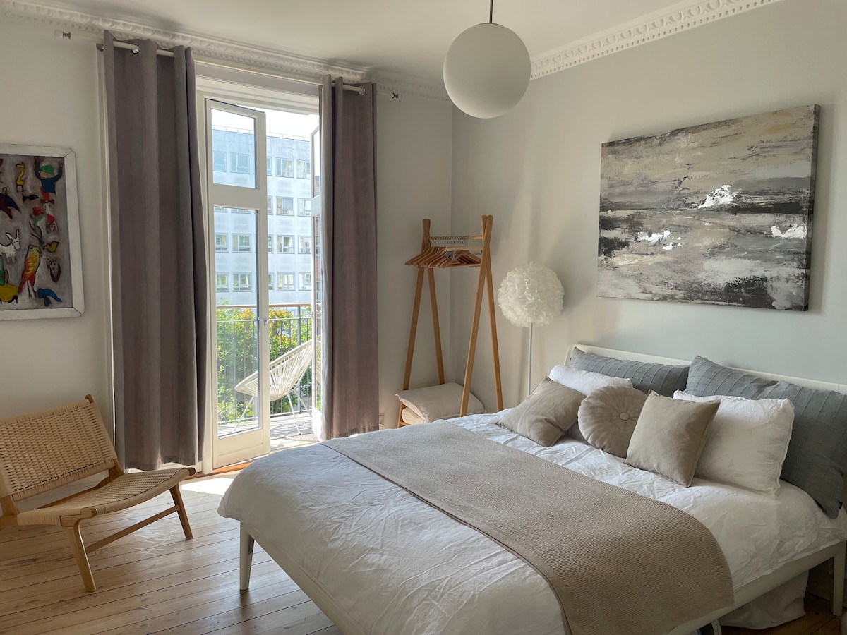 Este espaço elegante, mas acolhedor, na moderna Hellerup é perfeito para casais que visitam Copenhaga e os seus arredores do norte, incluindo o museu de arte moderna Louisiana. A 5 minutos a pé da praia (para um mergulho matinal), do porto encantador, de lojas boutique e de vários restaurantes/locais para levar para fora. Varanda ensolarada fora do quarto para tomar o seu café da manhã e relaxar para o resto do dia. Wi-Fi rápido. 10 minutos a pé da estação ferroviária. Autocarro em frente ao edifício.