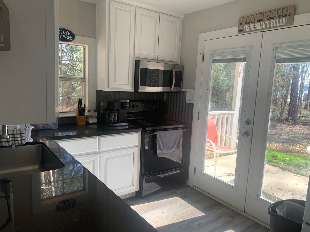 Your family or team will be close to everything when you stay at this centrally-located place. This 3 BD/2BA brick home is located on the #4 green of Pendleton Harbor 9-Hole PAR 3 golf course and has a lake view of Carrice Creek. Situated on a corner lot with pull through carport/garage with over a 1/2 acre of yard for extra parking if needed. There are two public boat launches, two full-service restaurants, convenience store, Dollar General and Keith's Tackle store within a 1-2 mile radius.