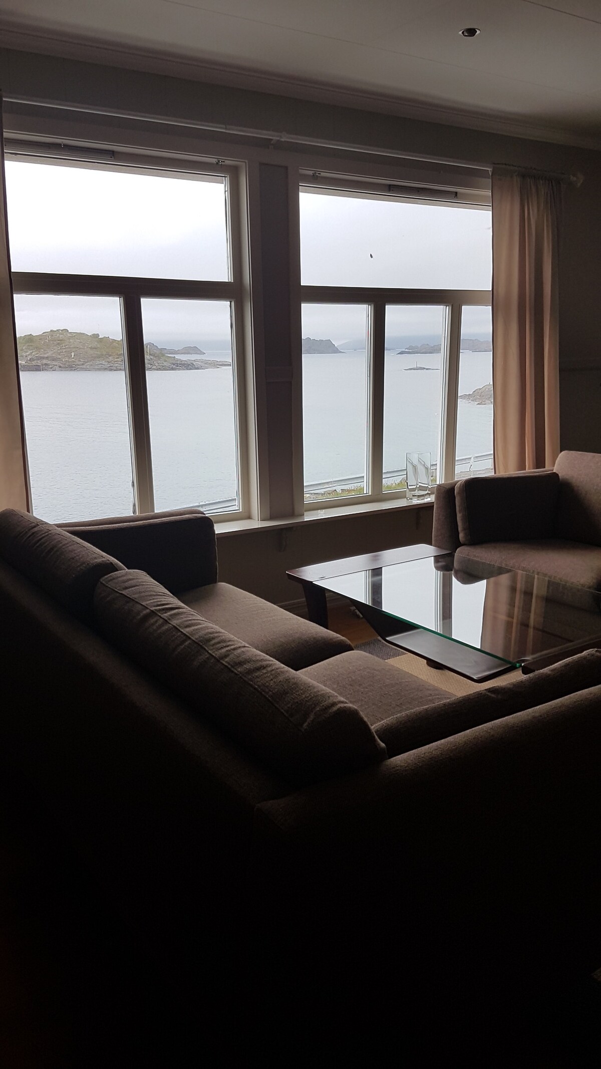 Grande apartamento no cais em Henningsvær. Apartamento superior, com vista deslumbrante para o mar. Dois quartos, casa de banho e terraço. A vista pode ser apreciada a partir do terraço, sala de estar ou sala de jantar. Bom padrão. Possibilidade de 2 camas extras no sofá-cama.