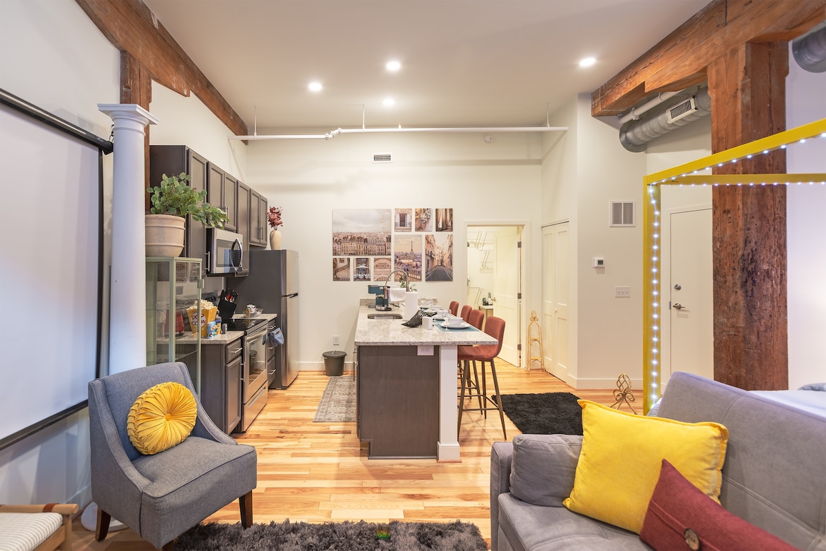 A LOCALIZAÇÃO É REI; é aqui que o distrito comercial, James River, Shockoe Slip & Cary St se encontram. Este apartamento loft criativo e espaçoso de 2 andares oferece conforto, comodidades atenciosas e memoráveis e fácil acesso à cidade. No primeiro andar, desfrute de uma espaçosa cozinha completa, espaços de jantar e estar. Pergunte-me sobre o meu pacote de pipoca e noite de cinema de 130 polegadas. Lá embaixo há uma cama king size e um quarto menor com duas camas de casal e uma cama de solteiro. Muitos restaurantes e bares acessíveis a pé para listar. Estacionamento gratuito!