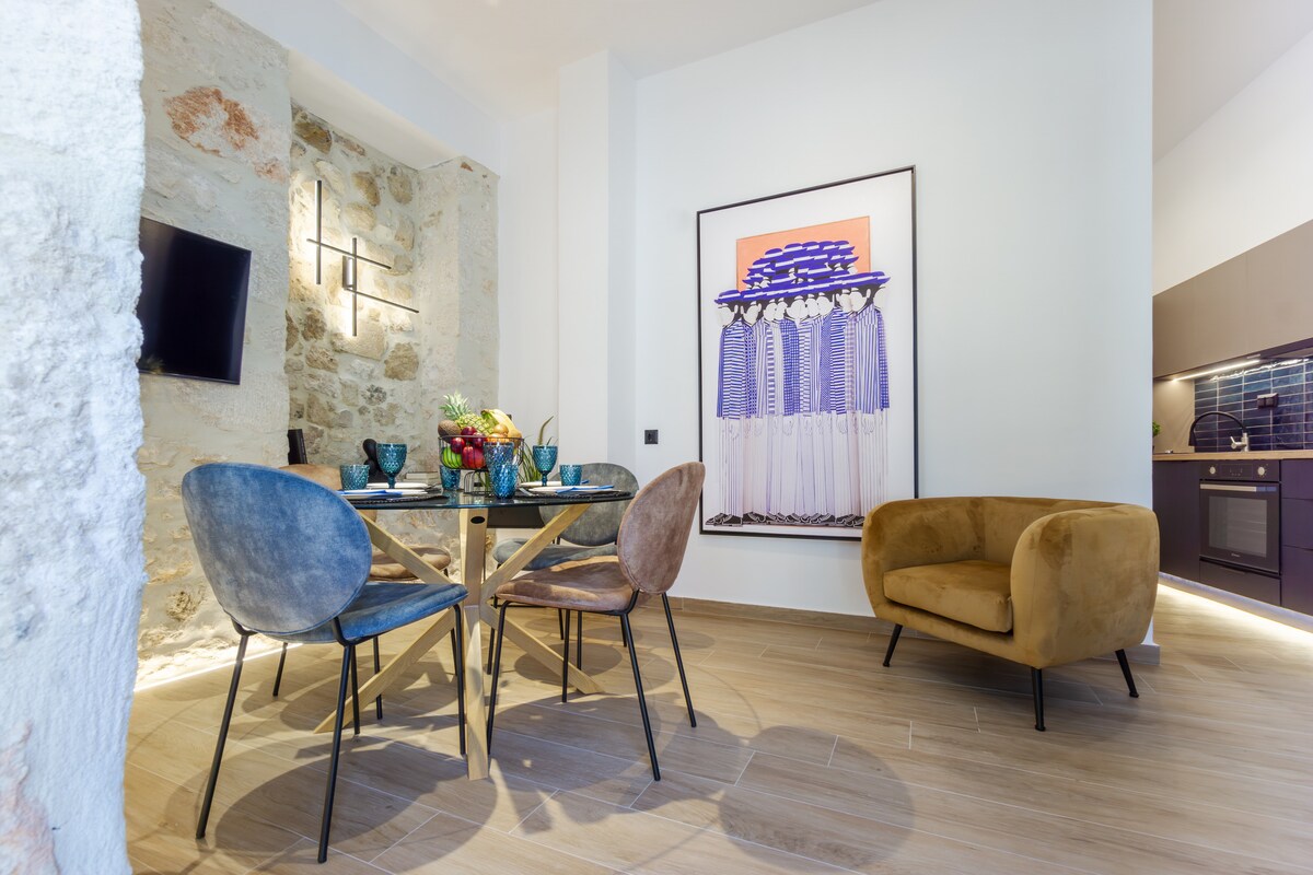 Apartamento de luxo com vista para o mar do forte veneziano "Koules" e o porto antigo. Apartamento de dois quartos moderno e elegante, espaçoso e brilhante no coração da cidade, a uma curta distância de todas as principais atrações, locais históricos, restaurantes, lojas e vida noturna que a cidade tem a oferecer. Sua localização única, design inteligente com os mais altos padrões proporcionam uma casa confortável e uma ótima experiência para todos os hóspedes.