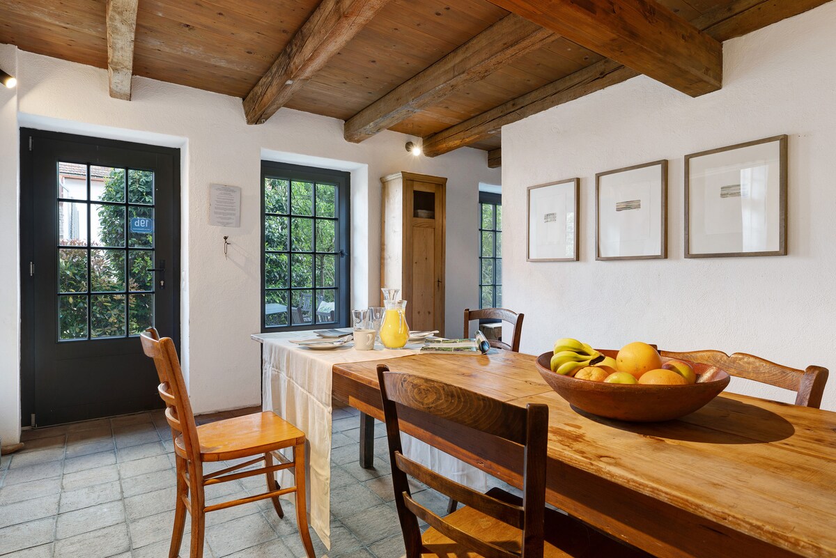 Caros hóspedes, bem-vindos à nossa casa de enxaimel elegantemente renovada de 1850. Gostaríamos de lhe oferecer uma atmosfera especial: estrutura visual, paredes parcialmente expostas e tetos de argila natural combinam com cadeiras e candeeiros de designer. Linhas claras na decoração, em estruturas orgânicas da casa. A exuberante yelängerjelieber, uma planta trepadeira nativa, ocupa a casa, alinhada com plantas perenes. Há inúmeros espaços de estacionamento gratuitos em redor da casa.