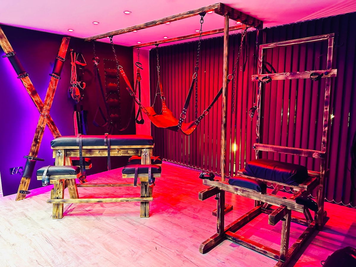 The cottage is tucked away in a completely secret and private location. The private spa has a sauna, jacuzzi, and an additional bathroom with a shower and toilet. However, the main focus is on the furniture, made exclusively for sexual pleasure, which can be moved around in any configuration. The 80-inch TV works integrated with 5:1 Dolby Atmos Cinema. The garden and gym are in the shared with us area. Parking is free, underground station Wood Green is a 10-minute walk away. 25min to city center