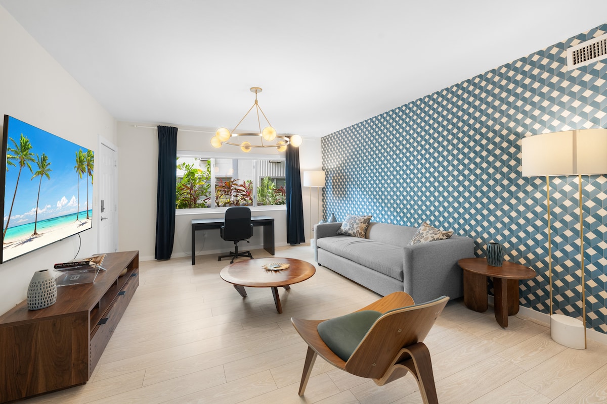Book with the Benichay Brothers! Azure Suite features a clean 1 bedroom 1 full bath newly renovated apartment 800 sqft of living space (80m2) Walking distance to Lincoln Rd & lots of trendy local Bars & restaurants nearby. Apartment sleeps up to 3 guests comfortably. Resort day passes are available for an additional charge, you can enjoy pool or beach access with a lounge chair & umbrella, at a nearby hotel guest. We worked out a 20% discount for all passes. Free on site Parking