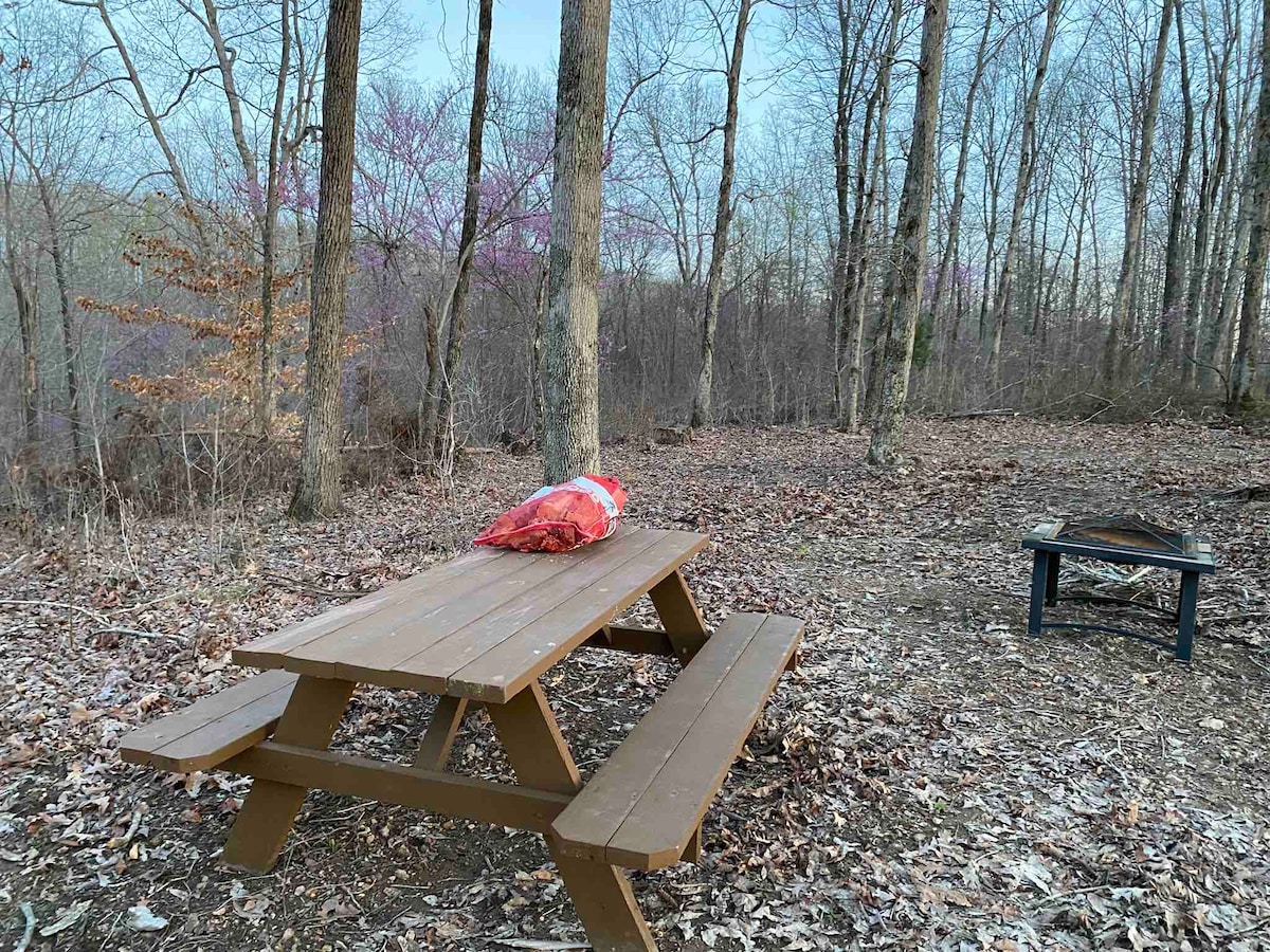 Discover this special campsite! It has a large fire pit, a picnic table, and two chairs. The campsite is secluded and there are no neighboring sites within sight. The sounds of nature are all around you here. Say goodbye to the noisy city life and get away in this wooded campsite to relax and unplug. If you do need to check in with friends or family, there is free wifi at the host's home parking lot. Water comes from the rock here, and the creek is usually crystal clear!