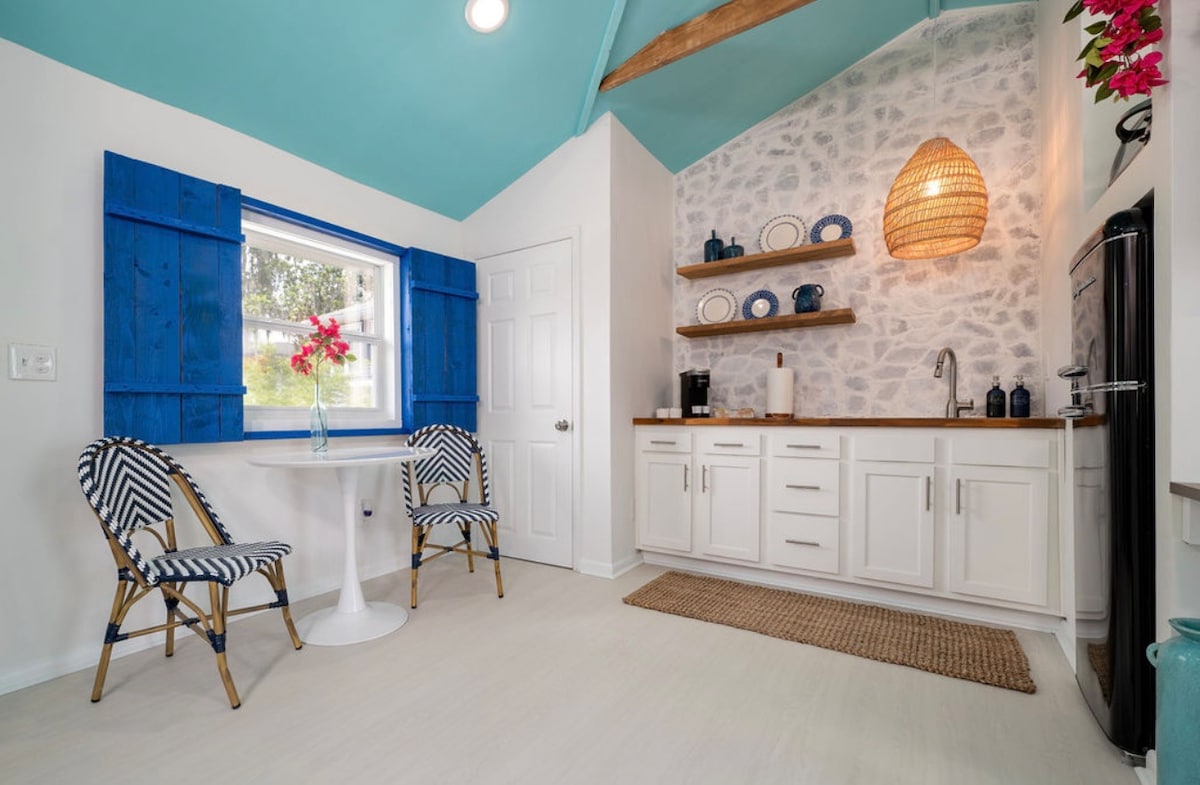 Fuja para uma vila grega tranquila no coração de Riverside, Jacksonville. Inspirado na cidade de Ioa, no topo do penhasco da ilha de Santorini, você experimentará o fascínio das Ilhas Egeias ao entrar neste estúdio caiado de branco. Mergulhe em rochas brancas desbotadas, estuque e detalhes em azul cobalto. Fuja se quiser ou caminhe até restaurantes e entretenimento locais. Independentemente disso, desfrute da magia de uma vila grega escondida no meio de Riverside Jacksonville!