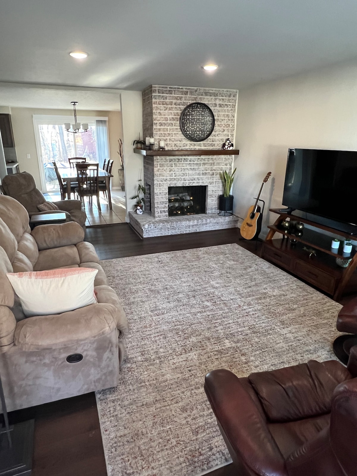 Relax and enjoy in a beautiful scenic home conveniently located in a quiet wooded neighborhood in Appleton. It has all the elements of being your get away from home. Nearly 3,000 sq. ft. Guests have access to all living areas, modern kitchen, full mason fireplace, vaulted ceilings, large deck and hot tub. Enjoy the backyard with a spacious deck, 7 person hot tub and outdoor fire pit. Five min. from Airport, Downtown, 25 min. to Lambeau and 20 min. to EAA. Includes coffee and breakfast.