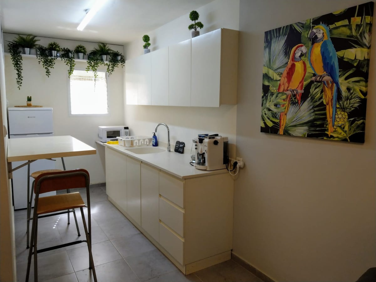 Esta é uma unidade maravilhosa localizada em Moshav Ramot Hashavim, entre Raanana, Kfar Saba e Hod HaSharon, e a 5 minutos de carro da estação ferroviária. A Orna, eu e o nosso gato ficamos no andar de cima da unidade, que tem a sua própria entrada. O Estúdio de Cerâmica da Orna fica ao lado e está disponível mediante uma taxa. A unidade tem 2 quartos amplos e uma sala de estar ampla, uma pequena cozinha e casa de banho, um abrigo (que partilhamos), um quintal e uma área de lazer para crianças. Do outro lado da rua há o parque infantil Moshav, um café-camião local.