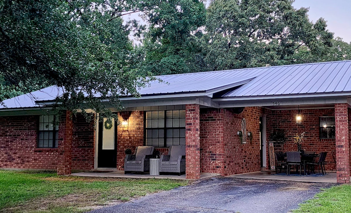 Relaxe em um retiro único e tranquilo. Este Dog Trot de 100 anos lindamente renovado fica no lado norte da nossa propriedade, oferecendo uma fuga tranquila cercada pela natureza. Relaxe na varanda da frente com vistas serenas de pastagens, paisagens arborizadas e avistamentos frequentes de veados. Desfrute da beleza tranquila do campo enquanto fica a poucos minutos das atrações de Ruston. Nota: A foto da capa foi tirada pelo nosso querido amigo, Paul Burns, um talentoso fotógrafo de paisagens de Ruston.