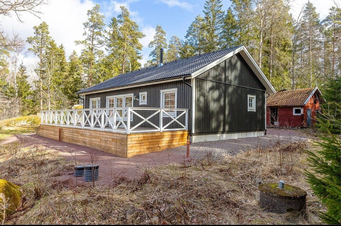 Linda casa recém-construída, 1 de (3) na área com espaços abertos. A residência oferece varanda para o lago com churrasqueira e deck para banhos de sol. Há uma lareira de pedra na casa que pode ser acesa. Os hóspedes têm acesso a um cais privativo e barco a remos, Ryds 390 Há também uma banheira aquecida com eletricidade a 39 graus durante todo o ano (obs! Sem bolhas, apenas purificação) Os hóspedes devem trazer suas próprias roupas de cama e toalhas, bem como carvão e acendedores para a churrasqueira.