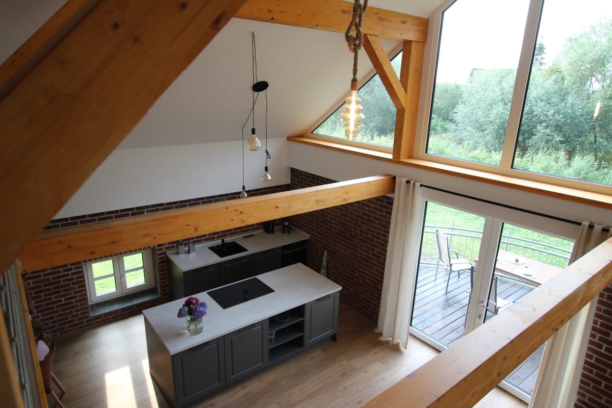 „Feldrain“ – ein hyggeliges Holzhaus im Grünen, Teil eines Ensembles mit gemeinschaftlicher Sauna und privatem Garten. Große Fenster öffnen den Blick auf die Pferdekoppel, Natur und Ruhe inklusive. Auf ca. 60 m² finden bis zu 4 Gäste (+2 Aufbettungen) Platz zum Wohlfühlen. Chillarea für Kids auf der Galerie, private Sauna-Wellnesszeiten entspannt reservierbar, kinderfreundlicher Strand in 10 min zu Fuß. Wäschepakete kannst Du gegen Gebühr dazubuchen, Early Check-In & Late Check-Out auf Anfrage.