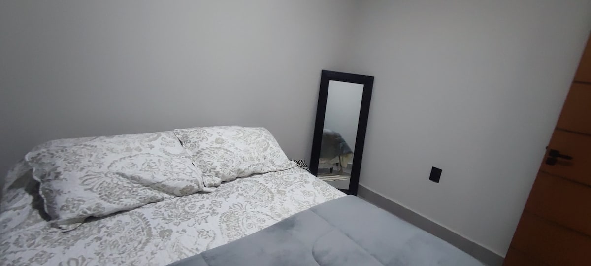 Casa aconchegante com maravilhosa vista, conta com um quarto onde contem uma cama de casal e duas camas de solteiro , com ar condicionado. Sala com Tv e um belo sofá para descanso, banheiro simples, porém supre todas as necessidades. Cozinha disposta com utensílios, fogão geladeira, torradeira, panelas e uma vista da natureza pela janela. Área externa com gramado e cercada, portão de acesso único, um belo pergolado e uma rede na varanda para apreciar a tranquilidade do campo, fica 2km do centr