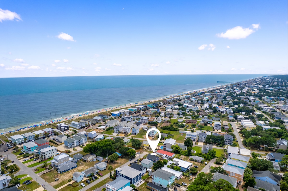 A varanda da frente diz tudo! Vistas deslumbrantes de uma das melhores praias da Carolina do Norte, com todas as comodidades de um lar e muito mais. É um tipo de casa de campo que você tira os sapatos na porta da frente e os pega 7 dias depois. Com 4 quartos e 3 banheiros, você pode trazer toda a família ou grupo de amigos e ter muito espaço para socializar e se retirar. Os lençóis estão inclusos e as camas estão feitas! Basta trazer seu protetor solar e toalha e uma atitude descontraída para desfrutar de tudo o que Holden Beach tem a oferecer.