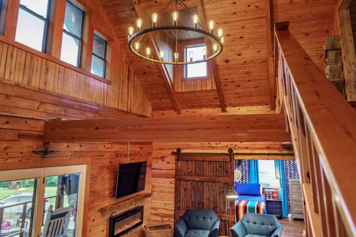Cabana rústica de madeira, a apenas uma milha do centro de Eureka Springs. A propriedade está rodeada pela natureza, com dois riachos convergentes que atravessam a propriedade. A cabana oferece uma sala de jogos totalmente abastecida, com um tabuleiro de dardos, mesa de matraquilhos, jogos de tabuleiro e uma televisão com jogos de vídeo. Além disso, oferece uma lareira completamente rodeada pela natureza, uma grelha, uma banheira de hidromassagem para duas pessoas e jogos ao ar livre. A sala de estar tem um sofá grande, uma televisão inteligente e uma biblioteca de DVD.
