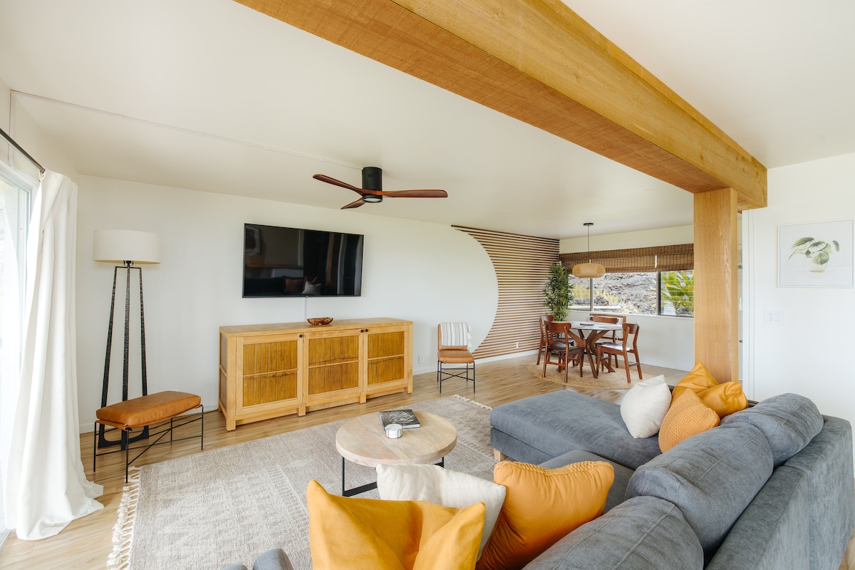 Discover the calm of The Olena, a contemporary 1-bedroom ground floor apartment with A/C, nestled in a quiet complex at the heart of Keauhou in Kailua-Kona. Designed with natural accents and thoughtful details, it is an ideal getaway for 4 guests to enjoy easy walking access to Keauhou Bay and the shops at Keauhou Shopping Center. Enjoy a shared pool, savor sunsets on the expansive lanai with a picturesque view of the Kona Country Club, and immerse yourself in the laid back lifestyle of Hawaii.