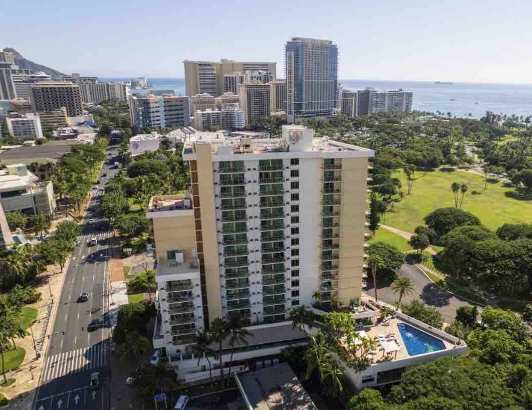 A unidade está localizada no lado oeste de Waikiki, entre Waikiki e Ala Moana. Este edifício também é muito popular entre repetidores e estudantes. A famosa loja de panquecas chamada "Cream Pot" fica no 1º andar do edifício e é um lugar muito bom para tomar o pequeno-almoço. A paragem de autocarro em direção a Ala Moana fica a 3 minutos a pé do edifício. Esta unidade de estúdio fica no 26º andar e acabou de ser renovada com novo piso e teto, bem como bar molhado.