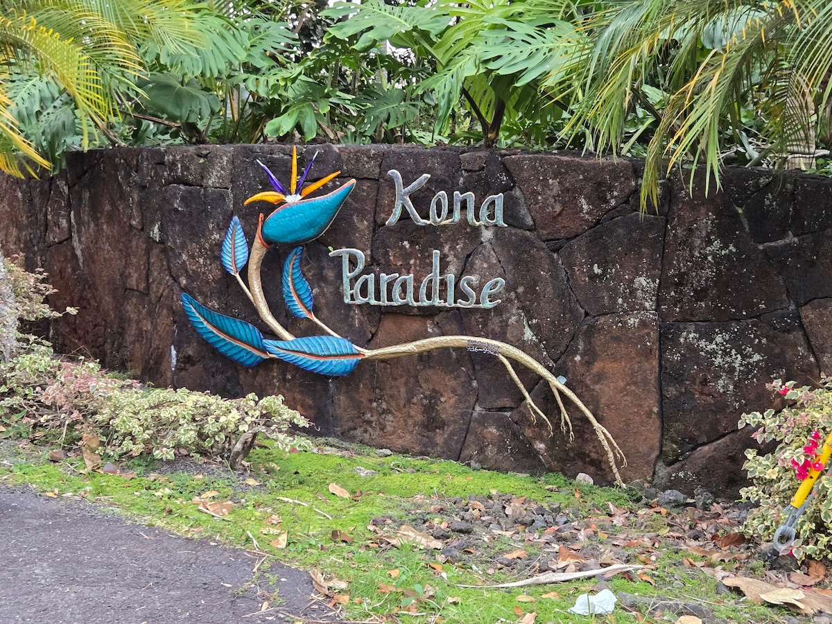 Venha para a nossa quinta de café Kona de 3,5 acres, ideal para famílias, situada nas montanhas a minutos das praias, a 15 minutos de Kailua-Kona e a 5 minutos de Captain Cook. As crianças podem alimentar as nossas galinhas amigáveis, ver lagartixas e explorar os terrenos exuberantes cheios de árvores de café, frutas e flores. A moderna quinta de 3 quartos e 2 casas de banho inclui um espaçoso lanai, perfeito para refeições em família, café da manhã e observação de estrelas. Desfrute de brisas frescas da montanha, uma escapadela refrescante do calor da costa e a magia do café Kona.