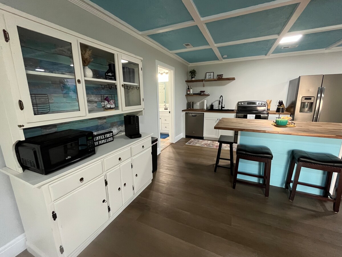 Espaço de lazer remodelado à beira da piscina. 1100 pés quadrados com 3 TVs interiores, 1 TV exterior e uma mesa de matraquilhos. A casa tem uma casa de banho completa, cozinha e área de estar. Tem uma cama king, sofá-cama e sofá (colchões de ar disponíveis mediante pedido). Aparelhos de aço inoxidável e acesso a uma piscina de 35 pés no solo com um splash pad e 6 pés de profundidade. A 15 minutos de vários locais de casamento. A uma hora de carro de Myrtle Beach. A 30 minutos da I-95.