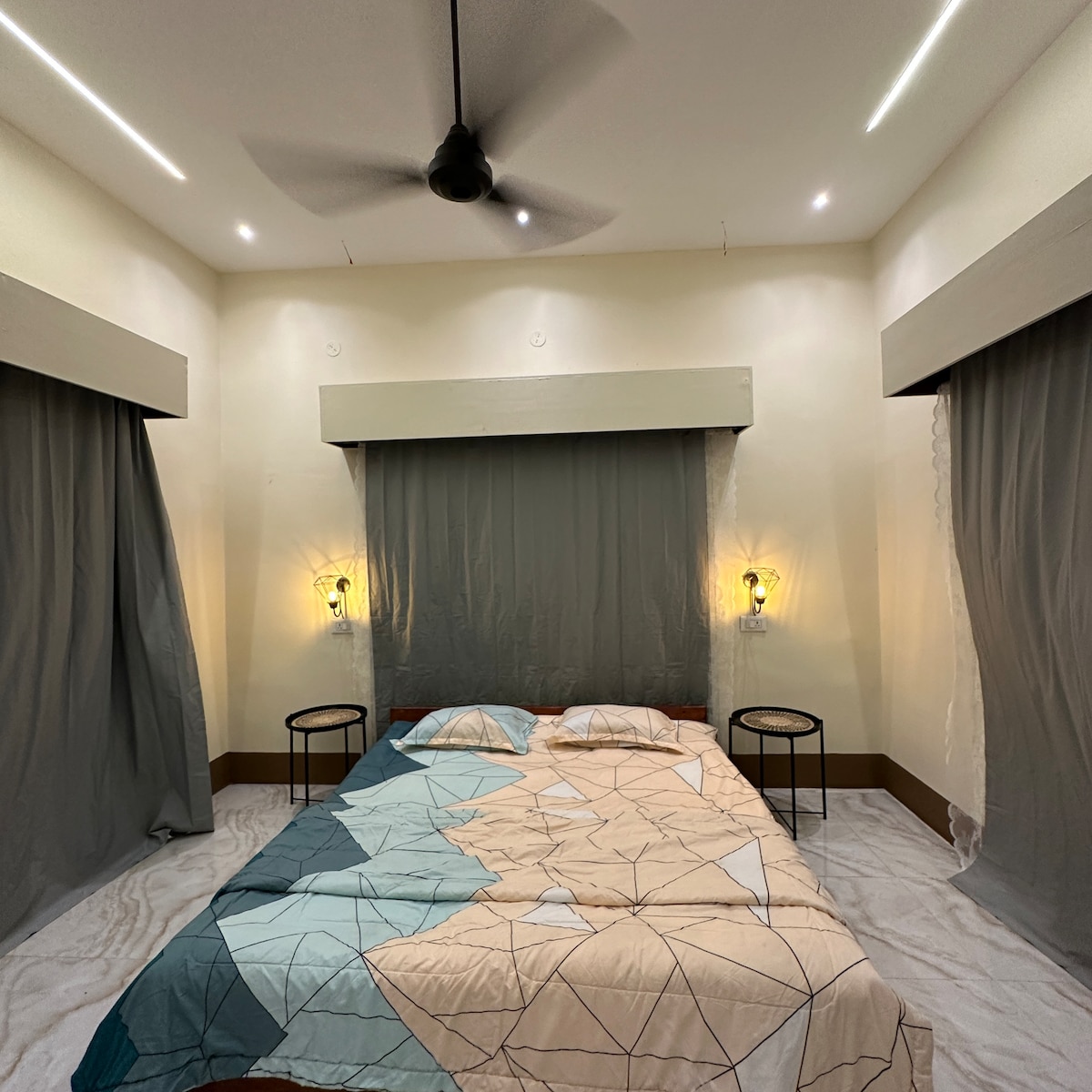 Welcome to your serene getaway located in North of hampi, nestled alongside a picturesque paddy field with breathtaking mountain views. Our modern independent 2 BHK home (fully air-conditioned) offers the perfect blend of comfort and nature, making it an ideal retreat for groups and families seeking a peaceful escape. Complimentary breakfast is included, and our fully equipped kitchen—featuring an oven, fridge, and stove—is perfect for preparing meals during your stay.