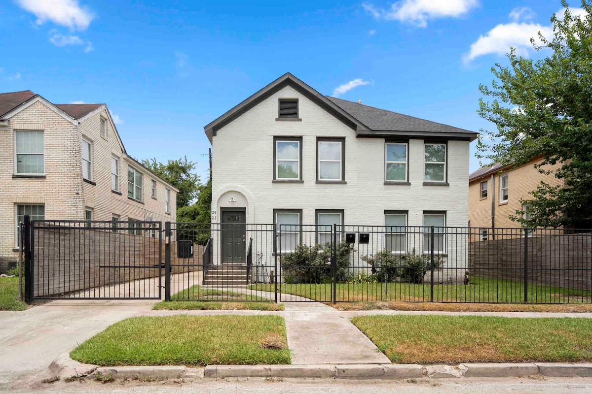 Olá! A Wilson Home é o seu refúgio pronto para o Campeonato do Mundo de 2026 em Midtown Houston! Moradia geminada espaçosa para grupos grandes, a uma curta distância de bares e restaurantes, com comodidades topo de gama, Wi-Fi rápido e uma cozinha moderna. Apenas 20 minutos de carro ou menos de 1 hora de transportes públicos para o NRG Stadium. A 30 minutos de ambos os aeroportos IAH/Hobby. oferta para famílias, fãs de desporto e amigos que viajam juntos — relaxe, recarregue e desfrute da cidade com conforto enquanto assiste aos jogos!
