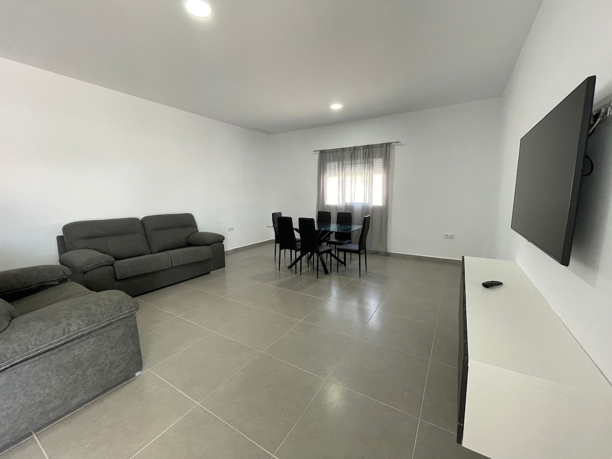 A brand new house located in a very quiet residential area in Chiclana de la Frontera (Poblado de Sancti Petri) with everything close by. There are three restaurants just 2-minutes walk (Italian, Spanish, Argentinian cuisine). The beach is 20-minutes walk away and only 5-minutes drive which means that the location is really ideal. We can offer you 3 spacious bedrooms, 2 bathrooms, swimming pool, sunbeds, WIFI, AC and a very well equipped kitchen. Ready to be enjoyed.