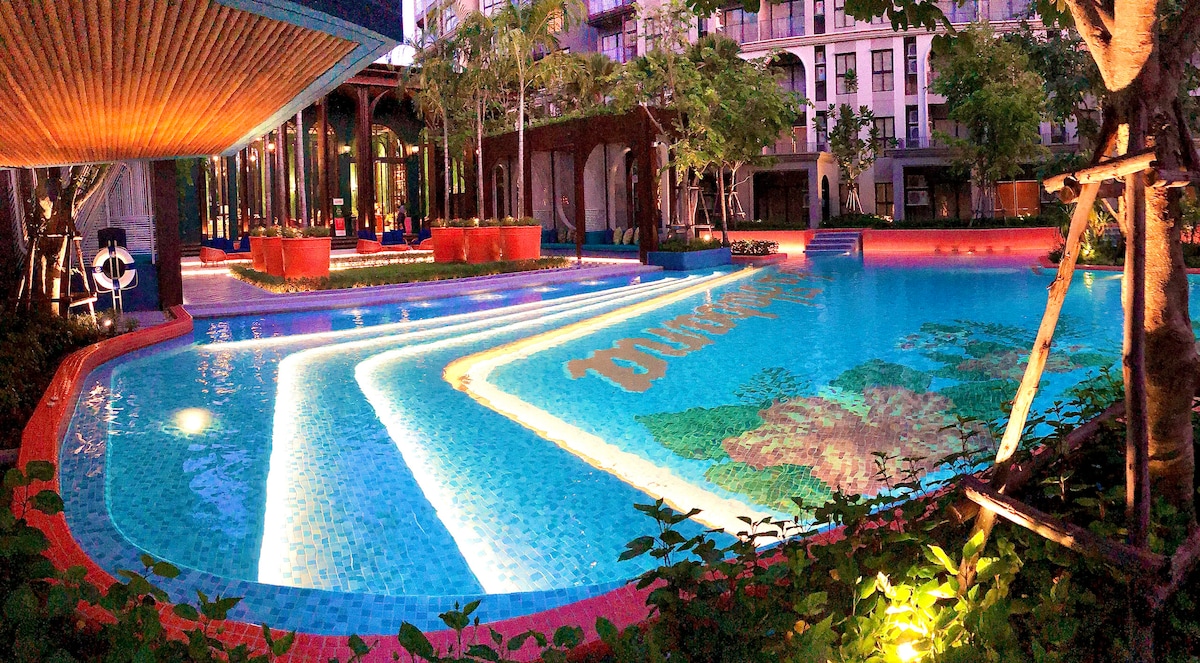 Sonhe que você está relaxando em uma praia e veja o pôr do sol no dia em seus olhos Condomínio ✔tranquilo à beira-mar com piscina e praia privadas. ✔Transforme a sala de estar em outro quarto inteiro para 2 casais, amigos ou familiares. O quarto✔ novinho em folha acabou de renovar tudo em 2022. ✔Assim como as Comodidades do Hotel 5-Star In-Room. ✔Ao lado do supermercado e 7-11. ✔*** Garanto uma estadia absolutamente privada. Sem compartilhamento, sem perturbações. ✔*** Atendimento ao Superhost amigável 24 horas por น้องมังคุด