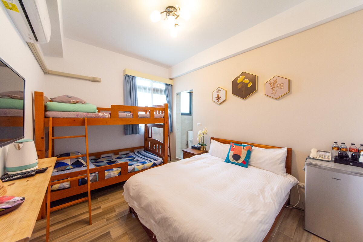 Quarto para 4 pessoas com vista para a montanha sem impressão (cama grande) - Green Road 74 acomodações/estacionamento com elevador novo/Mercado Noturno de Dongdaemun, Cidade de Hualien, Pacífico