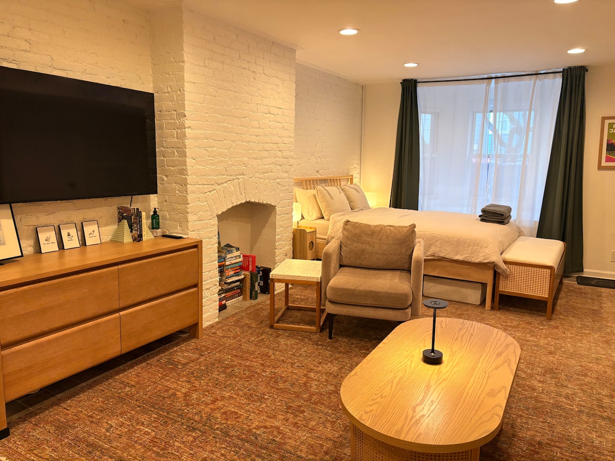 Este encantador e cuidadosamente restaurado apartamento de tijolos de 1901 está perfeitamente localizado em uma rua arborizada no centro de Hoboken. Com sua própria entrada sem chave privada, layout espaçoso com toques de designer, cozinha totalmente equipada, pátio privativo e comodidades modernas, como Wi-Fi, Alexa e TV inteligente. Se você está procurando uma escapadinha curta e aprecia o estilo sofisticado, este é o lugar perfeito para relaxar e se refrescar. Para estadias prolongadas, acomode-se e experimente sua nova casa longe de casa.