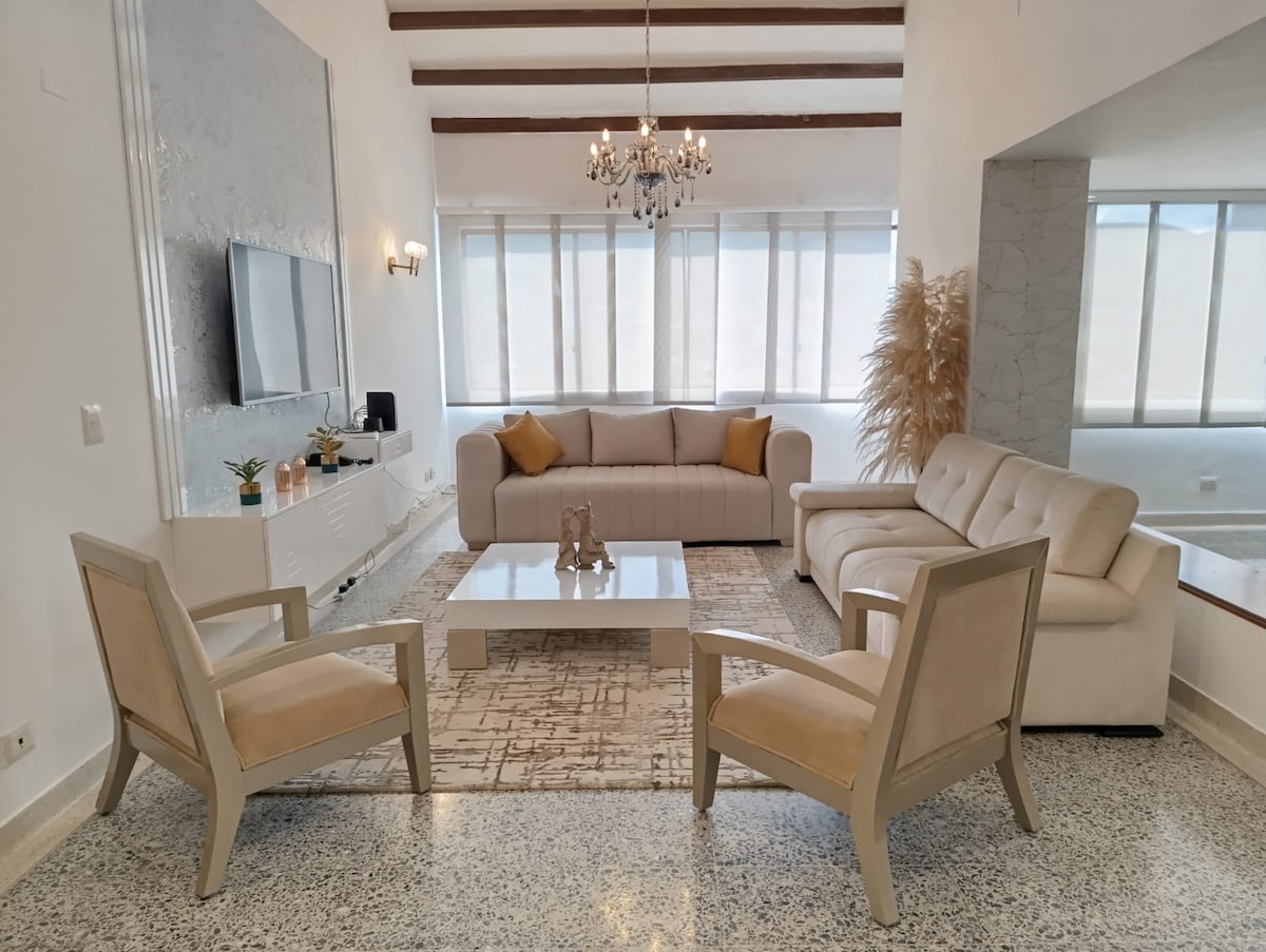 Bem-vindo à CASA RAMBLA SERRA em GRANADA, Cali. Este apartamento é o lugar perfeito para explorar a cidade, uma vez que está localizado a uma curta distância a pé das principais atrações turísticas, como o Museu de Arte Moderna, o Teatro Jorge Isaacs, o Ermita, o Boulevard del Rio, a Plazoleta Jairo Varela e a uma rua da zona rosa cheia de restaurantes, bares, cafés, clubes e lojas em Granada. O parque para gatos fica a apenas 10 minutos a pé, bem como o Peñon, San Antonio