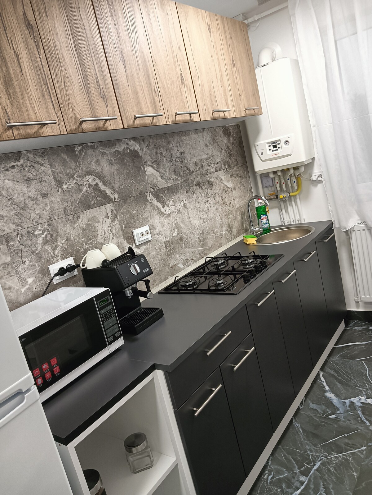O apartamento está localizado no centro de Hunedoarei, perto do beco pedonal (a um minuto), a 100 metros da Casa da Cultura e a cerca de 1,5 km do Castelo de Corvin. Estando no centro da cidade, há muitas unidades comerciais, bancárias e gastronómicas perto dele. O apartamento oferece aos hóspedes um quarto com cama conjugal, smart TV, ar condicionado, Wi-Fi, bem como uma casa de banho com chuveiro, wc, bidé e uma cozinha equipada com frigorífico,fogão, máquina de lavar roupa, café e chá.