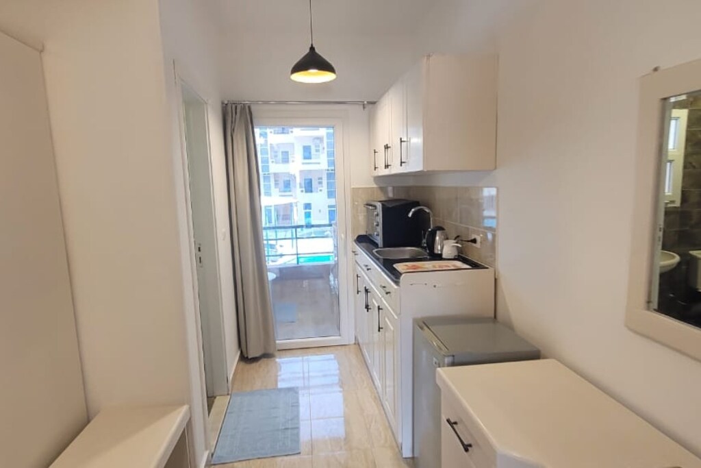 Enjoy a cozy, fully furnished studio inside the secure Tiba View compound, just minutes from the beach. It features a comfy double bed, a private bathroom with shower, a fully equipped kitchen, AC, and free WiFi. Ideal for solo travelers or couples seeking a peaceful escape. Guests can also enjoy access to swimming pools and rooftop views. Book now and enjoy a relaxing stay by the sea!.