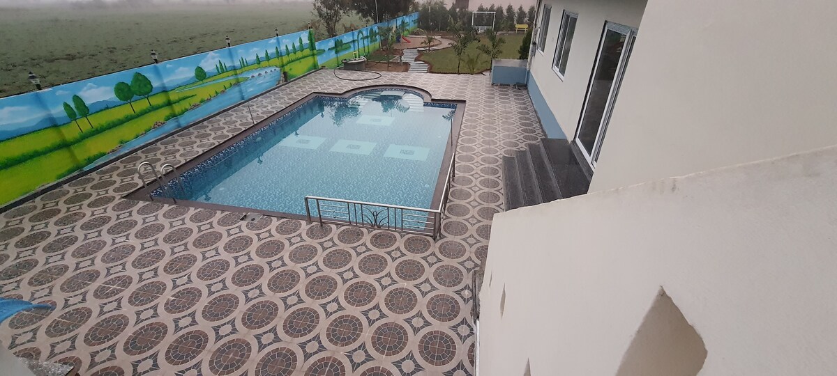 Espaçosa e elegantemente concebida, a moradia duplex combina maravilhosamente o charme rústico com a sofisticação moderna. Dispõe de 4 quartos totalmente mobilados com casa de banho anexa, uma piscina cintilante, um relvado verde exuberante, área de lazer infantil, campo de críquete para adultos e muito mais para oferecer o máximo conforto e relaxamento. Observação: É estritamente proibido consumir bebidas alcoólicas dentro da quinta.