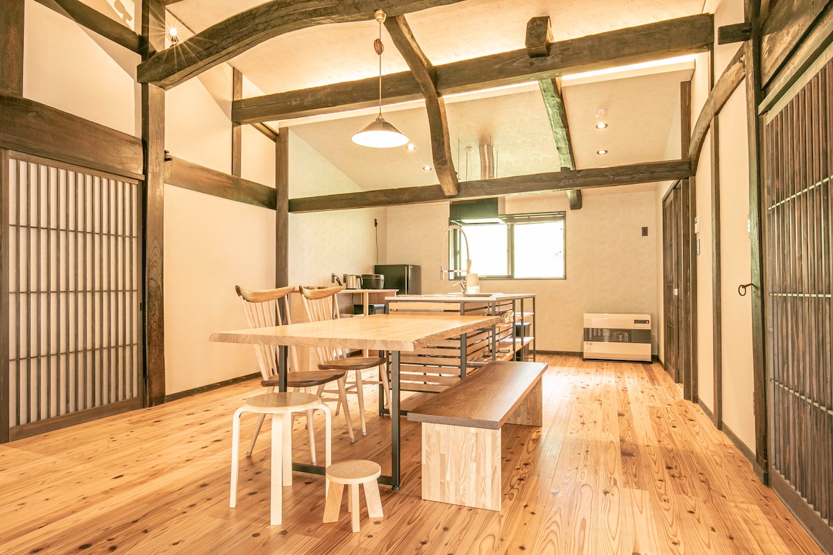 Os pilares e vigas da antiga casa privada de telhado de palha de 150 anos na área de Higashi-Kusano da cidade de Yonohara foram reutilizados como estavam, e a manutenção foi centrada no aquecimento do piso radiante, ar condicionado e circulação de água.Embora se sinta o bom e velho método de construção tradicional, é uma instalação adaptada ao estilo de vida moderno. O quarto tem 2 camas individuais e um futon para 6 pessoas, e é possível usá-lo em grupos como família e amigos.Desfrute como base para caminhadas, brincadeiras fluviais, esqui e como um lugar de cura rodeado por muita natureza.