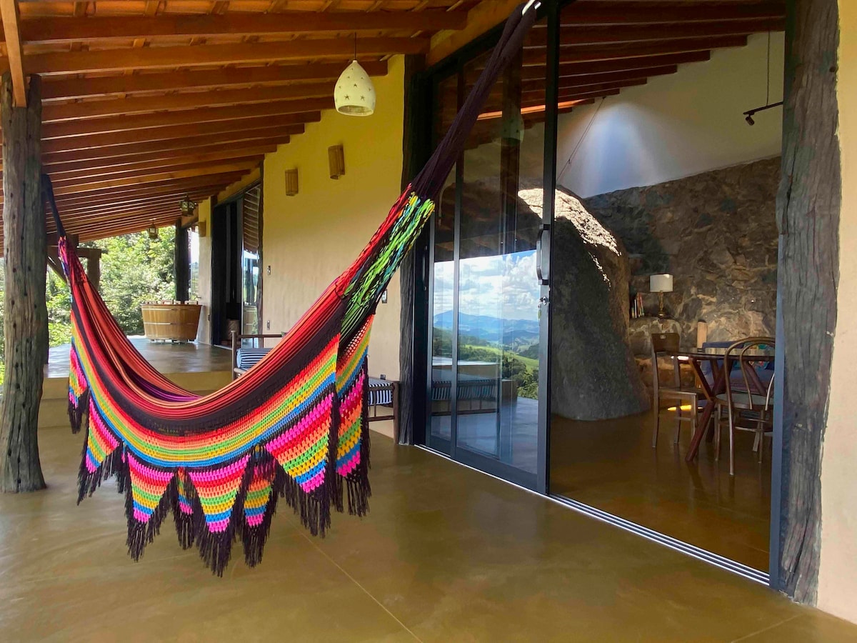 Arca de Pedra Única e Design Singular. Flutue nas nuvens de Gonçalves, com Mini-Piscina inspirada em Mykonos/Santorini: hidro, automatizada por voz, muito conforto e sofisticação. Aprecie o lindo pôr do sol e céu estrelado do seu Solarium-mirante e caminhe pelos gramados nas Serras Verdes de MG. "Desfrutar a experiência no Mont Sha'n é inspirador: reconexão e reabastecimento de energias, além da localização perfeita para também buscar por ecoturismo, gastronomia e lindas trilhas e cachoeiras."