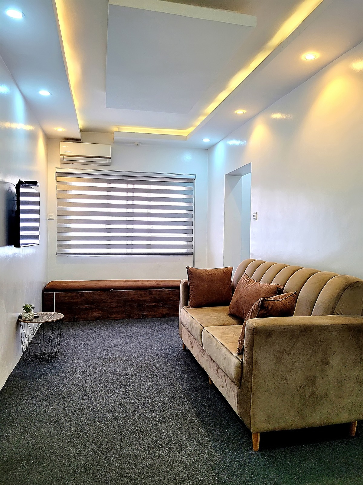 Experience a 5-star hotel feel with the comfort of home in this newly refurbished second-floor apartment. Bedroom and living room each have a TV, separated by mahogany wood profiles. Enjoy your private sitting area, AC, refrigerator, 55-inch smart TV, and a modern kitchen with a 4-burner stove. The bathroom has hot, pressurized water, electricity is 24/7, security is round-the-clock, and super-fast WiFi is ideal for working guests.”