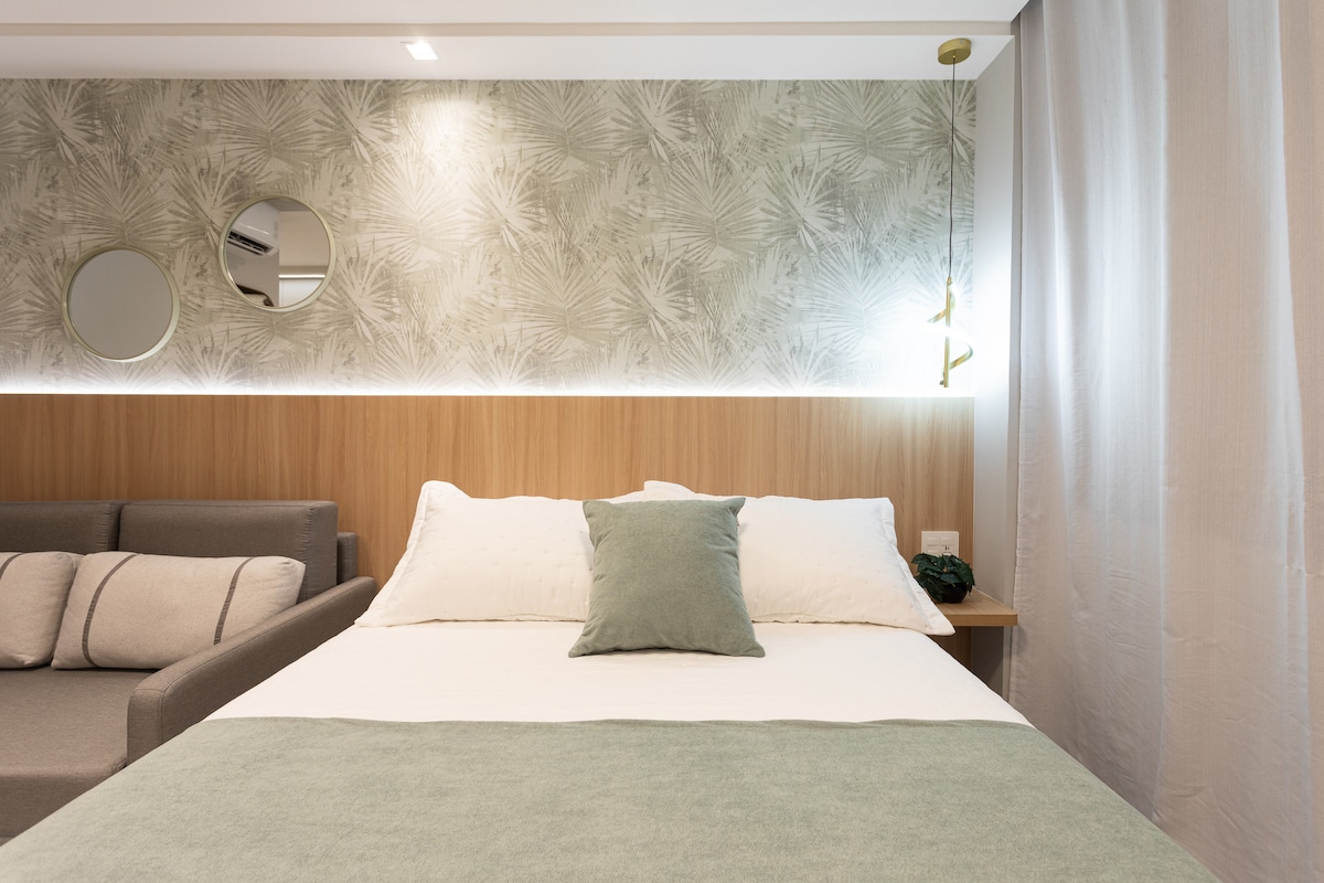 Viva uma experiência única neste estúdio acolhedor e elegante, projetado com atenção aos detalhes para oferecer conforto, funcionalidade e muito estilo. O ap azul planejado é um diferencial exclusivo, com iluminação suave e decoração pensada para relaxar, móvel inteligente e versátil que se transforma em mesa de jantar ou apoio para cozinhar — perfeito para quem valoriza funcionalidade. Piano digital disponível para relaxar, praticar ou se inspirar. Smart TV, Wi-Fi.