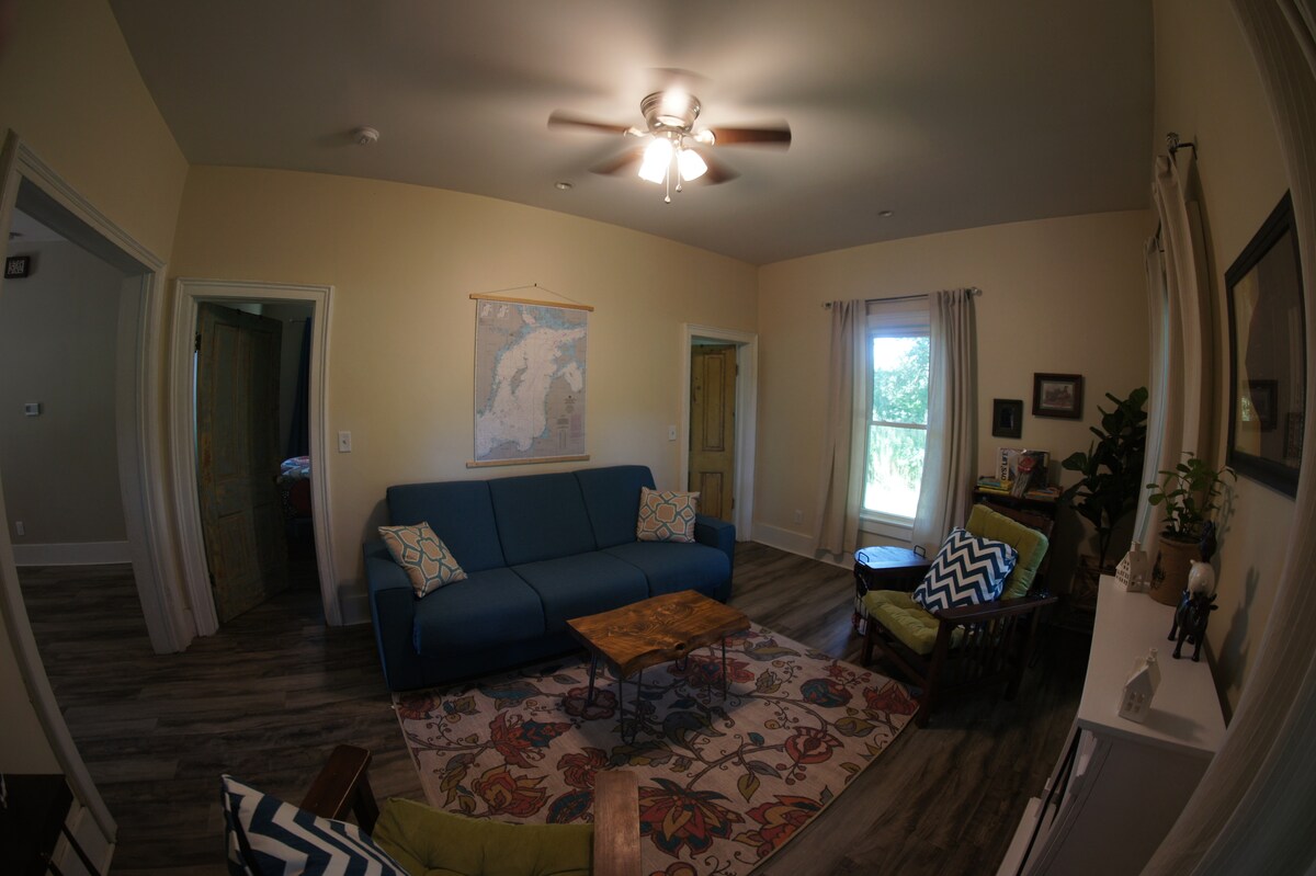 Recentemente intitulado a Hallmark House por um cliente! Esta casa fica na trilha de caminhada e ciclismo do I&M e é uma casa histórica remodelada do canal de 750 pés quadrados em Utica. Caminhe ou pedale a dois quarteirões até ao centro da cidade e desfrute de refeições e bebidas locais. Dois quartos e uma casa de banho e uma grande cozinha moderna. Relaxe na sala de estar com uma pequena lareira elétrica. Belo cenário rural com muita luz natural e localizado numa quinta em funcionamento. Campos de golfe a 2-3 milhas da Casa do Canal.
