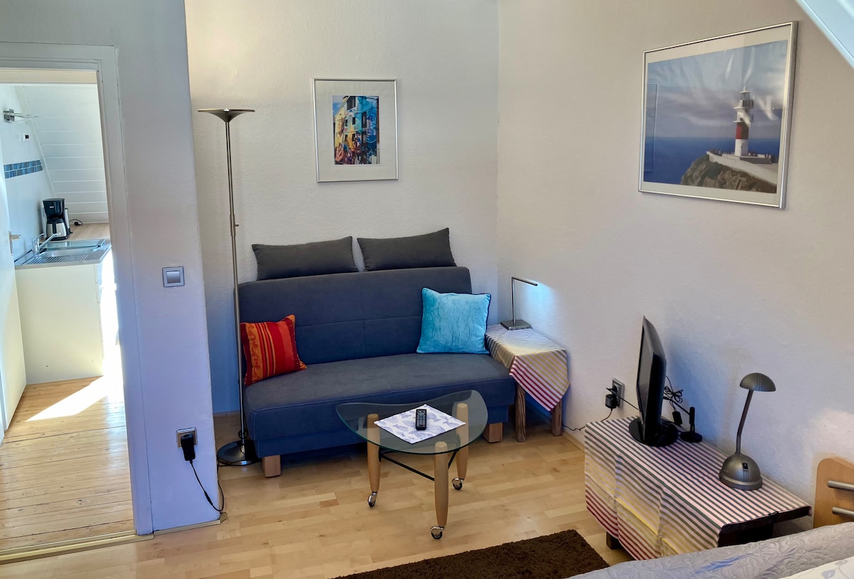 O estúdio consiste em uma área de estar/dormir, TV de tela plana, bem como uma cozinha totalmente equipada com sala de jantar, geladeira, cafeteira, chaleira e micro-ondas. Wi-Fi gratuito disponível. Você tem uma entrada separada, o corredor é bem iluminado. Fumar, festas e eventos são proibidos. Não são permitidos animais de estimação. Faça o check-in você mesmo com a caixa de chaves.