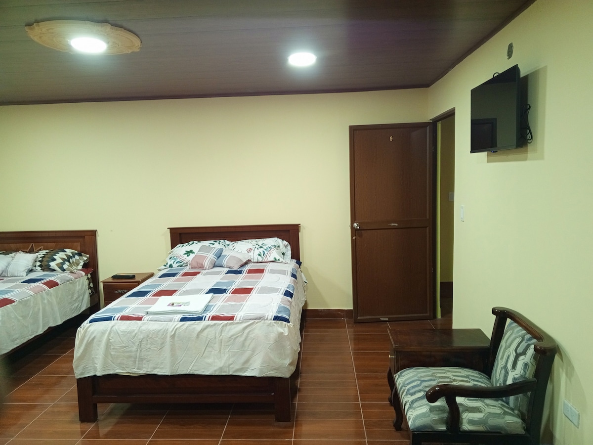 Os nossos espaços são caracterizados pelo seu estilo único, tranquilo e agradável, para que possa desfrutar da sua estadia da melhor forma. Além da nossa localização, permitirá que conheça a cidade sem problemas. Temos quartos simples, suites, duplos e família, tudo nas melhores condições para si e para o seu conforto, com serviços como: - Largura com mesas ao ar livre -Cafeteria - Quente com água quente, além de todos os seus produtos de higiene pessoal - Wi-Fi e SmartTVs -Parqueadero
