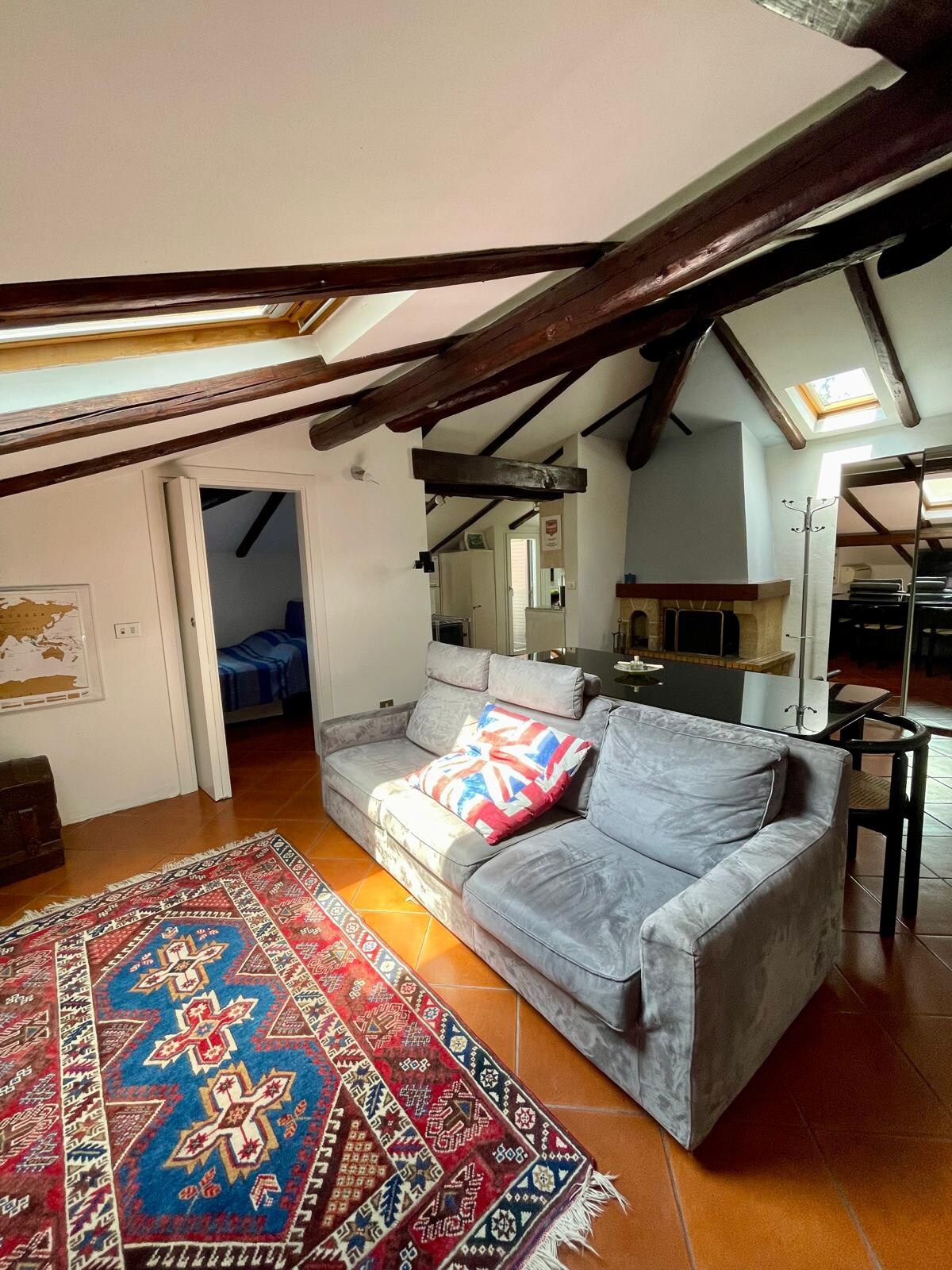 Apartamento no último andar (com elevador) de um edifício não muito longe do centro de Bolonha, com vigas expostas e lareira de pedra. Terraço privativo com vista para a cidade histórica e as colinas de Bolonha. Sala de estar com mesa de jantar, sofá-cama, televisão e sistema de home cinema Bose; quarto com cama de casal; cozinha equipada e banheiro com chuveiro. Localizado em uma área residencial facilmente acessível por todos os meios de transporte e com boa infraestrutura. Estacionamento pago.
