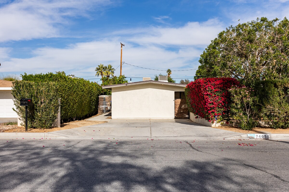 Estúdio acolhedor com entrada privativa e pátio, piscina e spa, golfe ao redor, 8min - Tennis Gardens, 12min - Acrisure, localização vencedora! No coração de uma cidade, mas em um bairro tranquilo com muito estacionamento na rua. 10 minutos a pé: Albertson 's, TraderJoe' s, posto de gasolina, lavanderias, salões de cabeleireiro e unhas e alguns restaurantes. Dirigir rápido: Lojas de luxo, galerias de arte, restaurantes e bares em El Paseo, Acresure Arena, McCollum Theater, Tennis Gardens, Golf, Chella, Stagecoach, Living Desert Zoo, Casino