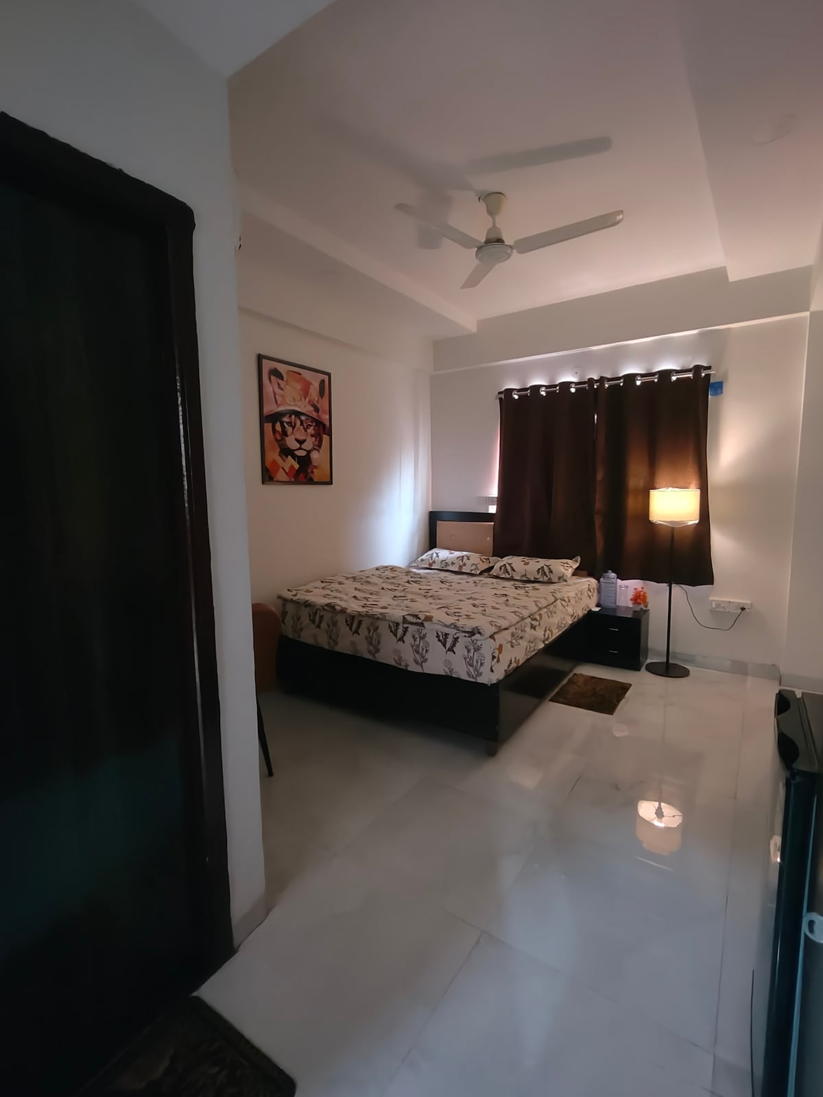 Um estúdio de estilo suite de hotel com check-in autónomo em Vijay Nagar, Indore, perfeito para casais em férias, viajantes solitárias e profissionais. Tem uma cama queen, sala de estar aconchegante, TV, secretária dobrável, Wi-Fi e uma varanda. Com interiores cuidadosamente concebidos e uma cozinha equipada, o espaço oferece o conforto de um hotel e a liberdade de uma casa. A 10 minutos do Farzi Cafe & Piano Project A 10 minutos do centro comercial C21 25 minutos para o aeroporto e estação Ideal para estadias curtas/longas e românticas em Indore.