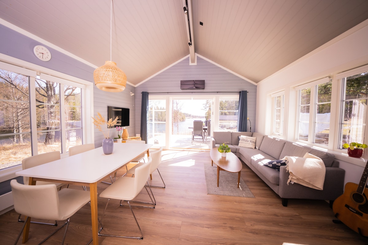Bem-vindo à nossa encantadora casa de campo à beira-mar, com vistas deslumbrantes, a apenas 40 minutos de Oslo. O vencedor do "Summer Cottage 2020" na TV2 é auto-construído e cheio de detalhes encantadores. Ideal para famílias, casais ou grupos de amigos, com possibilidade de passeios de barco, remo, pesca, caminhadas, esqui e patinagem no gelo. A cabana tem uma bomba de calor, ar condicionado, TV e Internet para conforto durante todo o ano. Desfrute de grelha a gás e fogueira para noites aconchegantes no exterior. Experimente a diversão na cabana e experiências na natureza mesmo à porta!