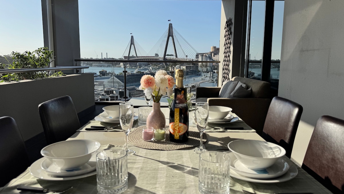 Apartamento aconchegante de 1 cama junto ao porto e perto do CBD! Fique no último andar de um bloco boutique com vista para os terraços georgianos do século XIX na histórica Pyrmont. Desfrute de uma xícara de café caseiro na varanda, um passeio ao pôr do sol ao redor dos cais de Pyrmont e as vistas da Ponte da Baía do Parque Pirrama. Experimente as diferentes cozinhas ao virar da esquina: francesa, tailandesa, grega, japonesa... Algumas das melhores padarias de Sydney estão bem na sua porta. Você gosta de sorvete? Messina nunca decepciona!