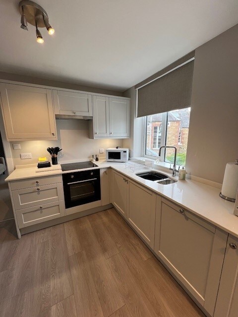 Monabri fica perto da rua principal e do rio. De bom gosto e confortável. Sala de estar grande, cozinha totalmente equipada, 3 quartos duplos, banheiro com chuveiro conveniente no andar de baixo com vaso sanitário, dois quartos duplos, um king size, um zip & link com pode ser 2 solteiros ou um super king, banheiro familiar, quarto principal no 2º andar com suíte e varanda Juliette com vistas deslumbrantes. O jardim é fechado e tem um galpão com chave. Peebles é popular entre os turistas que visitam as Fronteiras Escocesas e Edimburgo