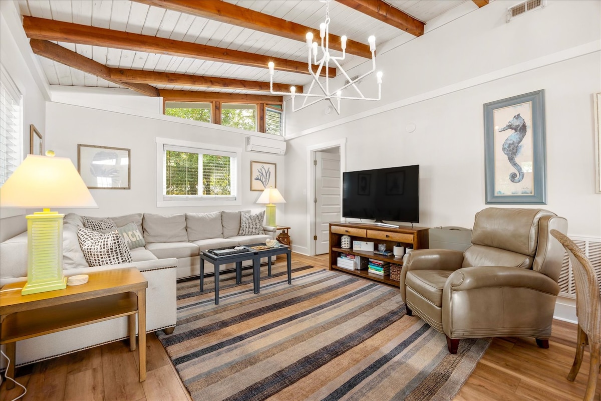 Suíte Principal Renovada com paredes de shiplap, banheira de hidromassagem e sanita bidé. Muito semelhante a um spa e perfeito para uma pessoa sozinha ou para um casal que queira fazer uma escapadela. Fácil caminhada até à praia, mercado de agricultores e concertos ao ar livre. A uma curta distância a pé de restaurantes. O seu quarto tem entrada própria no segundo andar. Varanda ampla e vedada também à sua disposição! Temos televisão com Roku. Mobiliário de quarto novo e colchão com cama ajustável. Não está preparado para a segurança de crianças.
